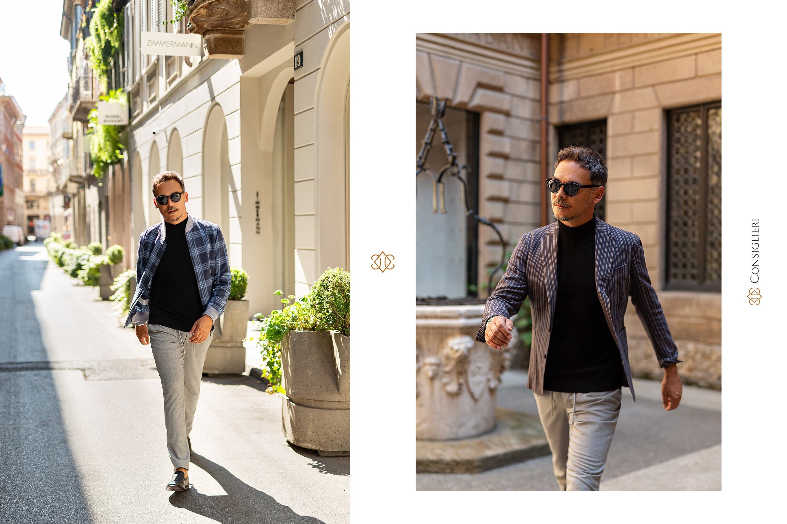 Realizată în decorul orașului Milano, una dintre capitalele modei, ședința foto a pus accent pe elementele cheie ale garderobei masculine și pe starea de spirit pe care ți-o impune atmosfera italienească definitorie pentru gusturile în materie de estetică și lifestyle ale lui 𝐑𝐚̆𝐳𝐯𝐚𝐧.