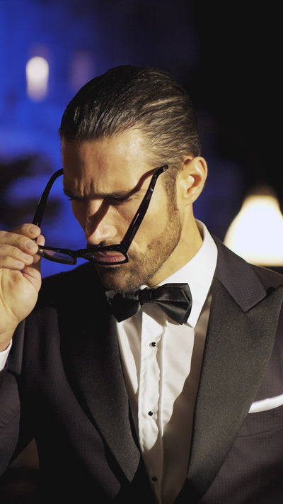 - Accesorii rafinate: Butoni exclusivi, papion din mătase italiană, batistă de înaltă clasă și șosete fine, asortate cu mare atenție la detalii.