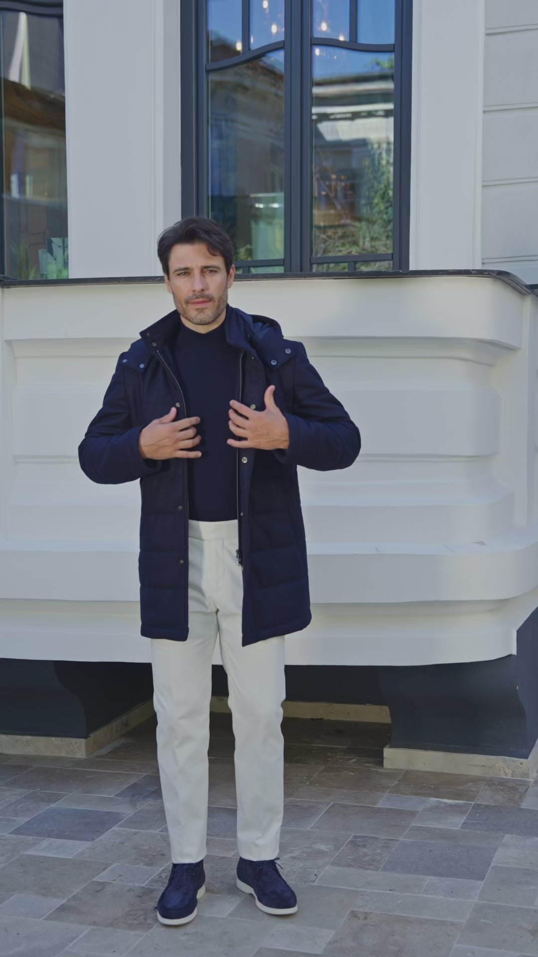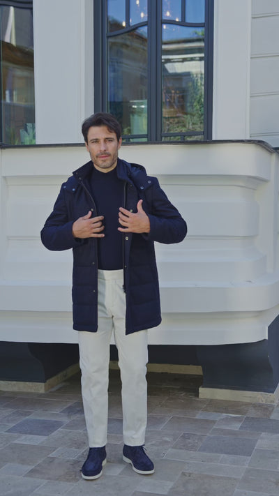 O geacă tip Parka realizată din 100% lână Loro Piana, reinterpretată în cheie elegantă pentru sezonul rece. Designul său versatil aduce funcționalitate și rafinament, păstrând liniile curate și prestanța unei piese premium.
